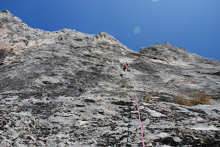 Jos, ca tare m-au strans papuciiSambata a fost soare si cald... a inceput era tractoristilor la bronzat :D. Primul traseu: decid sa ma bag cap, trec de primul spit, de al 2-lea si cand privesc spre al 3-lea mi se face groaza... este prea departe... mult prea departe, asa ca renuntz, descatzar un pic si salam in jos. Porneste si Alin cap, ajunge si el la locul cu pricina si imi da dreptate, face un artificiu ;-) si pune o asigurare intermediara intr-un spit din traseul alaturat. Incet, dar sigur facem 3 trasee. Oboseala, caldura si lipsa de apa din zona ne face sa ne intoarcem la corturi.